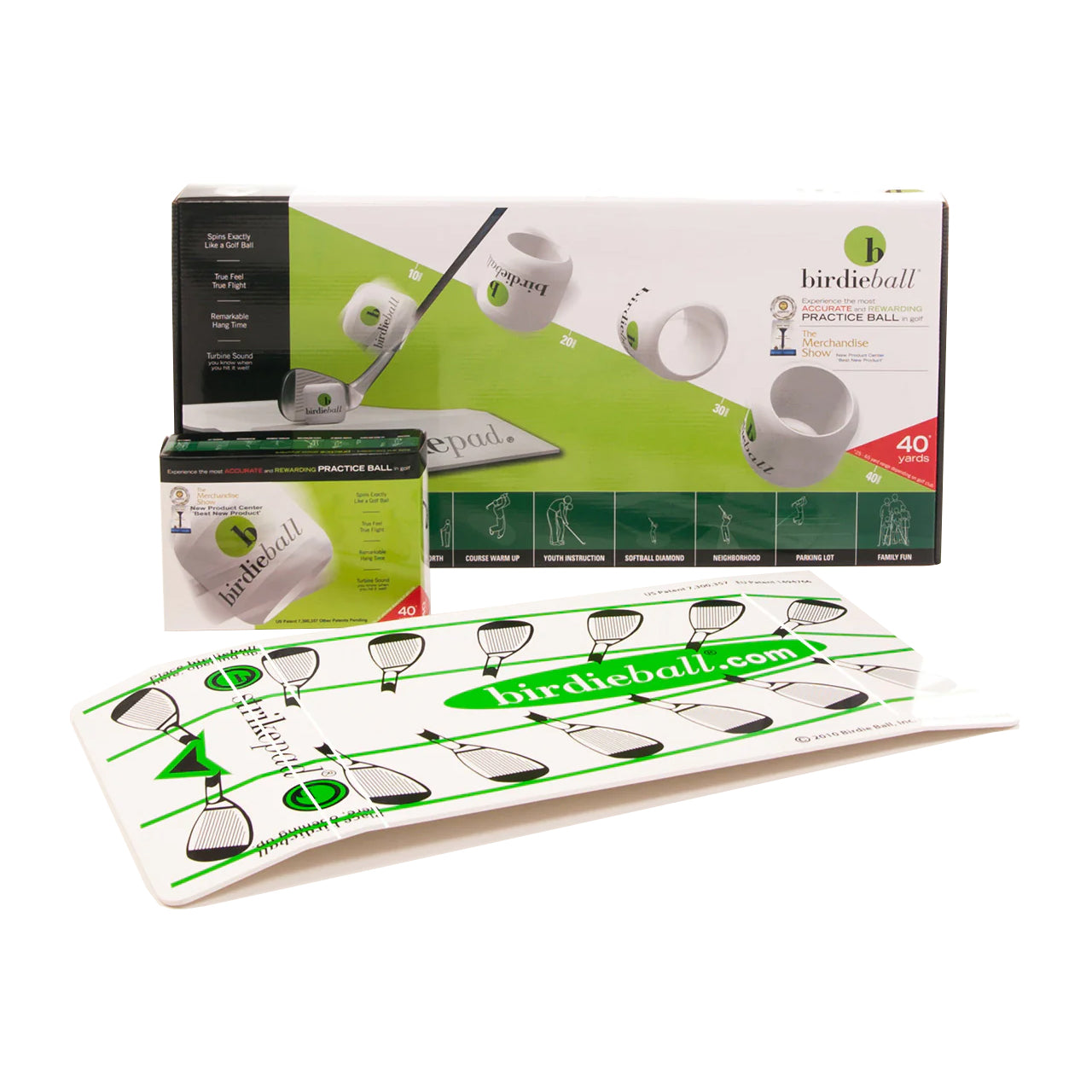• The BirdieBall is PGA Award-Winning and has a limited flight so all you need is 40 yards with a full swing.
