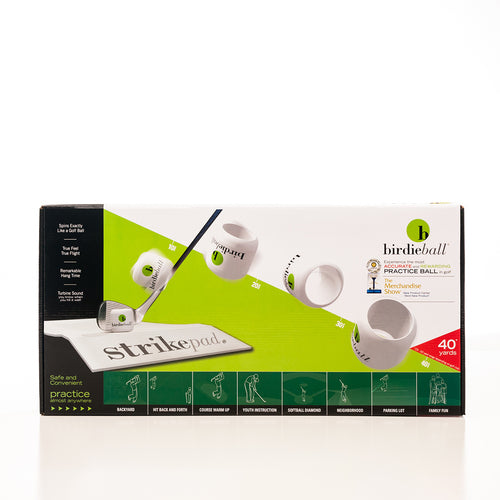 The BirdieBalls and StrikePad set make practicing from anywhere in the world easier than ever before! The BirdieBalls allow you to get the feeling of hitting a real golf ball without requiring the space or safety equipment of using true golf balls, while the StrikePad makes it easier than ever to get the feeling of hitting and following through on your swing, all without damaging your clubs or the surface you’re practicing on. Blemished StrikePads work the same as regular ones, they simply have some print blemishes so are priced lower for your convenience.