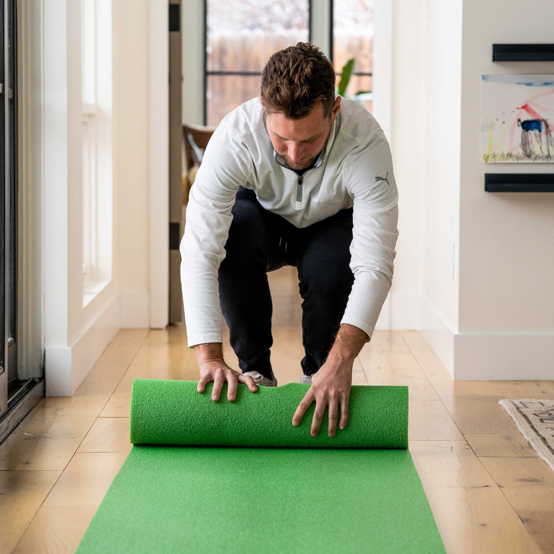Portable and light-weight, BirdieBall indoor putting mats roll up for storage and lay flat for a perfect roll, every time.