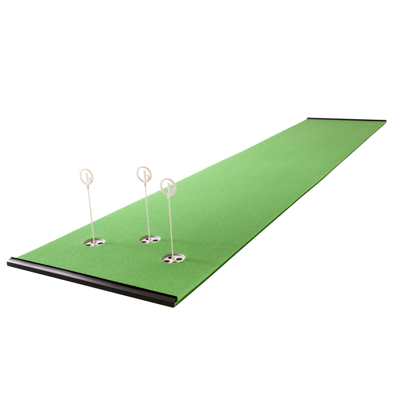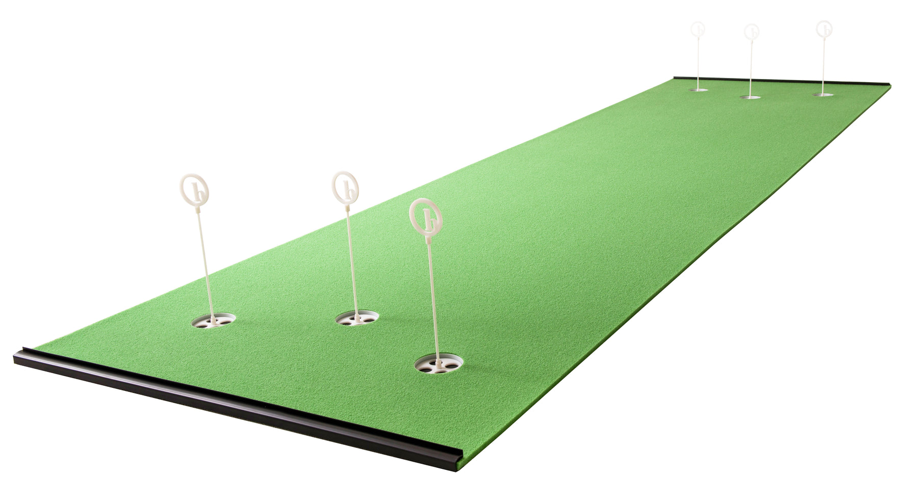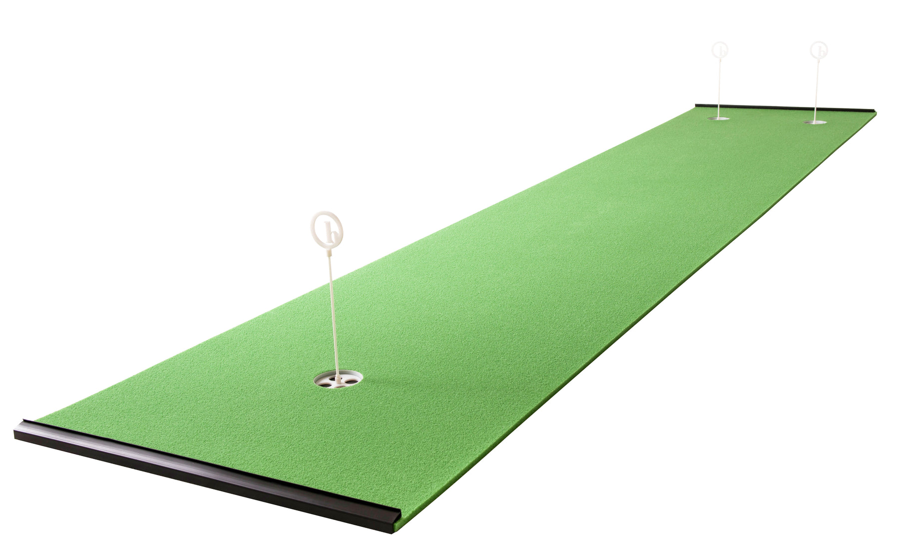 Our greens are engineered with a grain. Angled nubs of artificial grass allow you to practice putting both into the grain and down grain on the same putting surface.