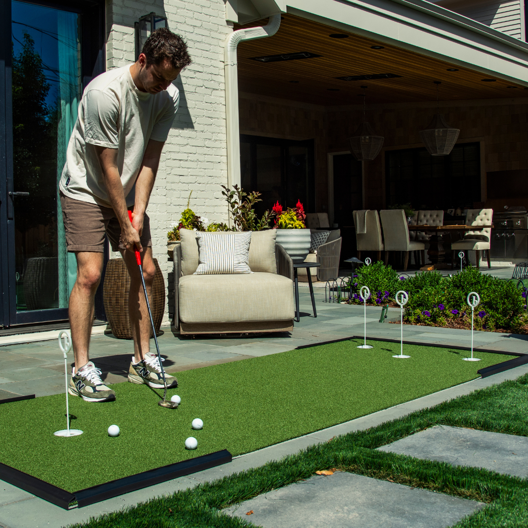 *Please note that this is currently the only outdoor product offering available, along with the Simulator Greens. All other putting greens listed under putting green packages and in the putting green builder are intended for indoor use only* We also recommend our indoor putting greens if you are looking for the purest and truest roll. This outdoor green is great for the durability and ability to use it outside, but the roll is not as good as our world-class and revolutionary indoor greens!*