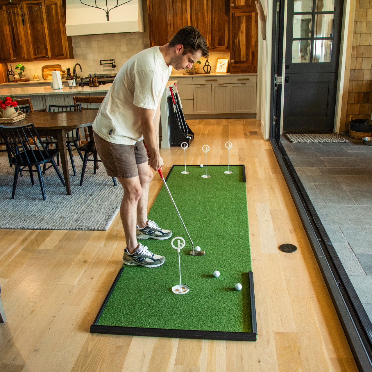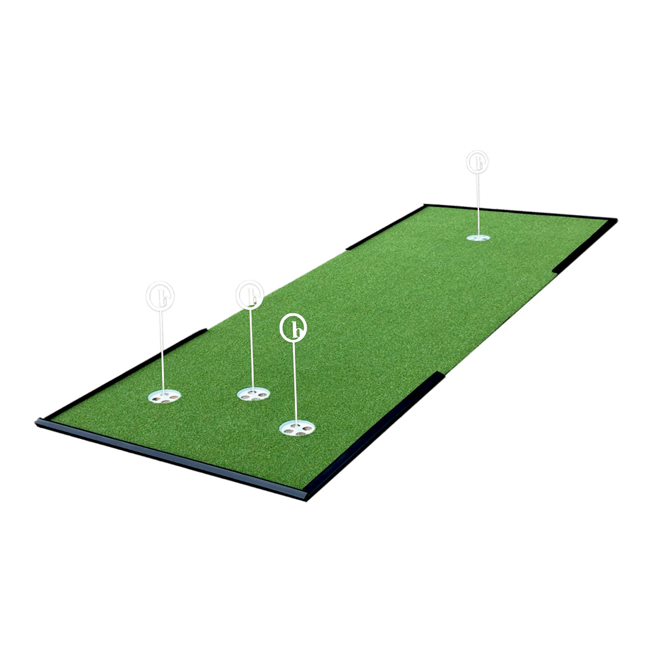 This outdoor/indoor turf option is grain neutral and rolls as true as possible using the putting green turf material. We wanted to offer the very best solution for use outdoors and indoors in high-traffic situations that need a more durable alternative to our standard indoor putting greens. If you need an awesome and durable backyard putting green that can be used indoors, or outdoors in the elements, this is the right option for you!High quality, ultra-durable nylon turf
