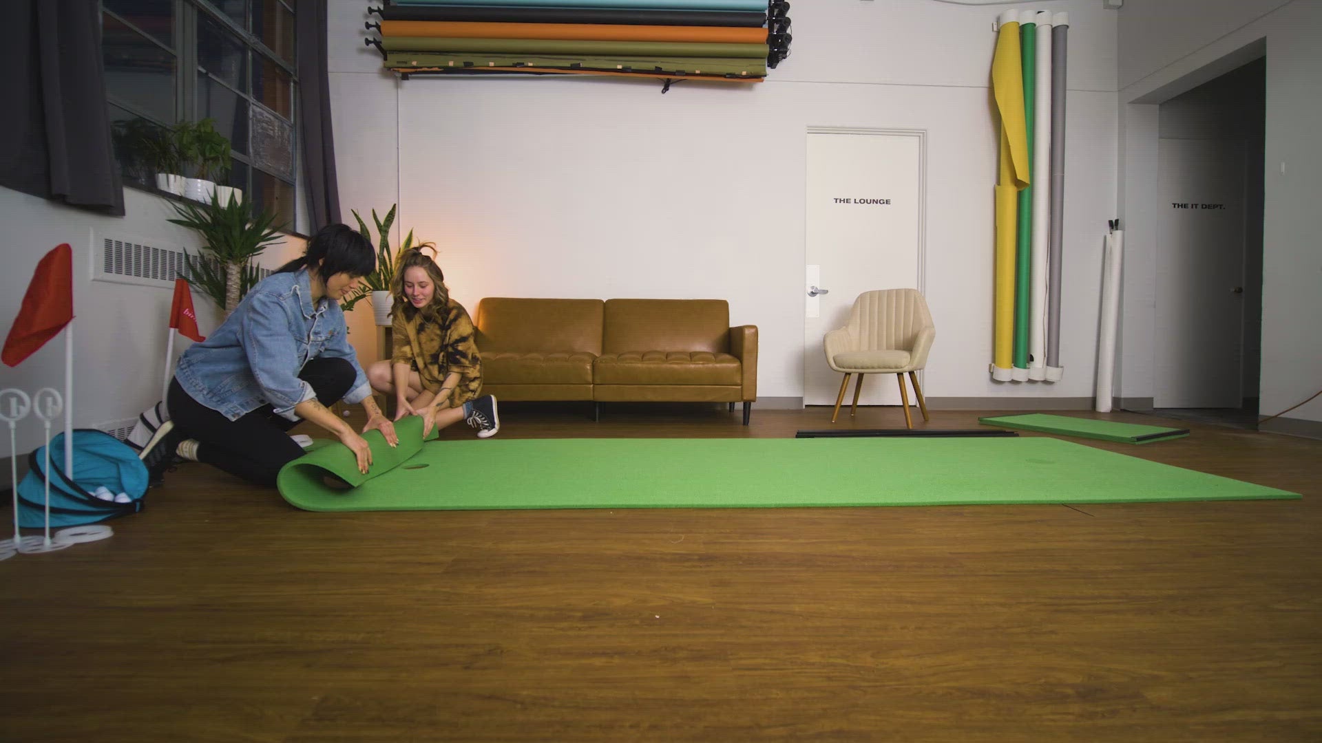 Portable and light-weight, BirdieBall indoor putting mats roll up for storage and lay flat for a perfect roll, every time.